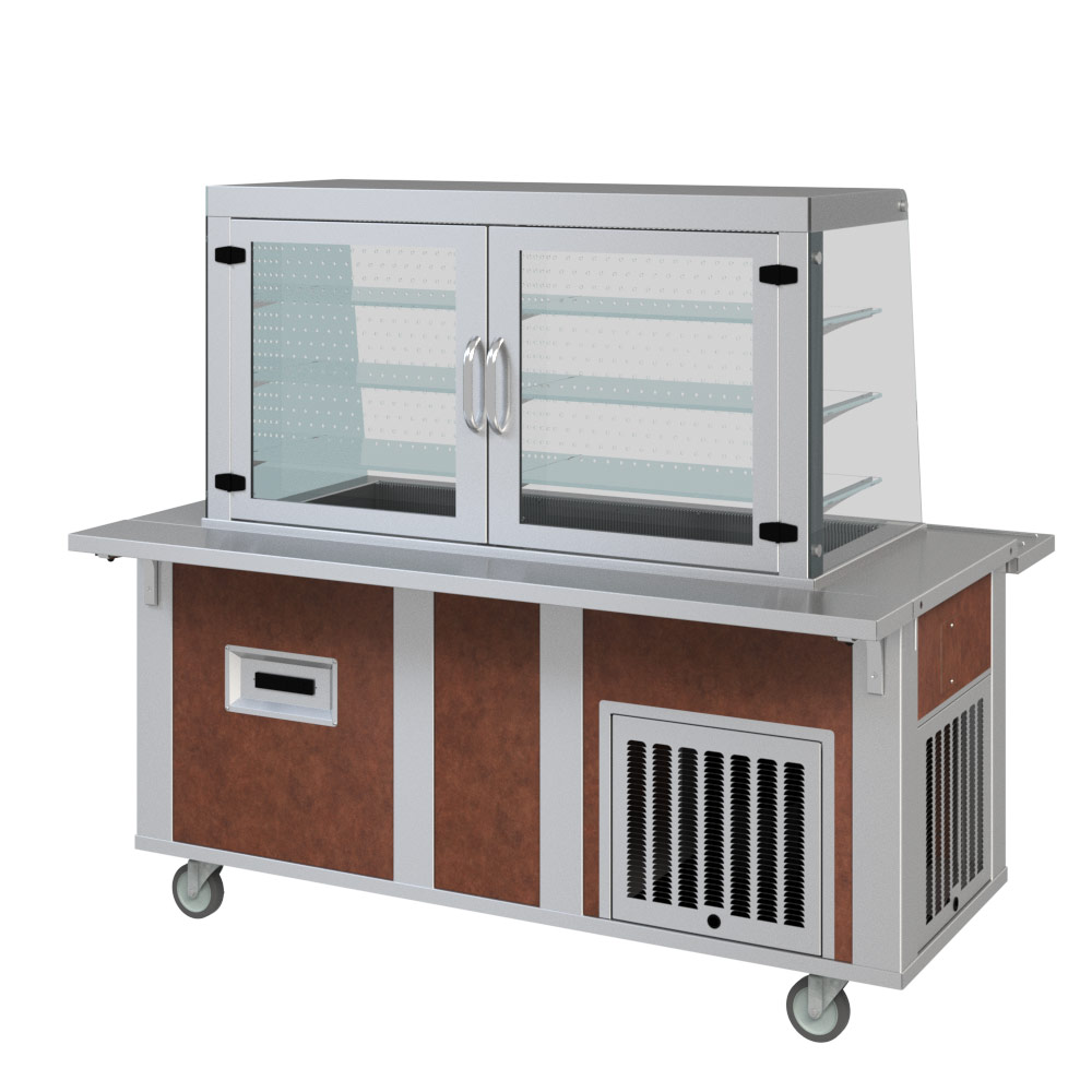 The food is cooled by a precisely controlled air flow pattern that maintains 38° to 40°F within the cabinet, even though the customer side is open for self-service. Employing blowers and ducts, the system creates a circular flow of cold air that covers all of the displayed food while protecting the food from ambient temperature conditions.