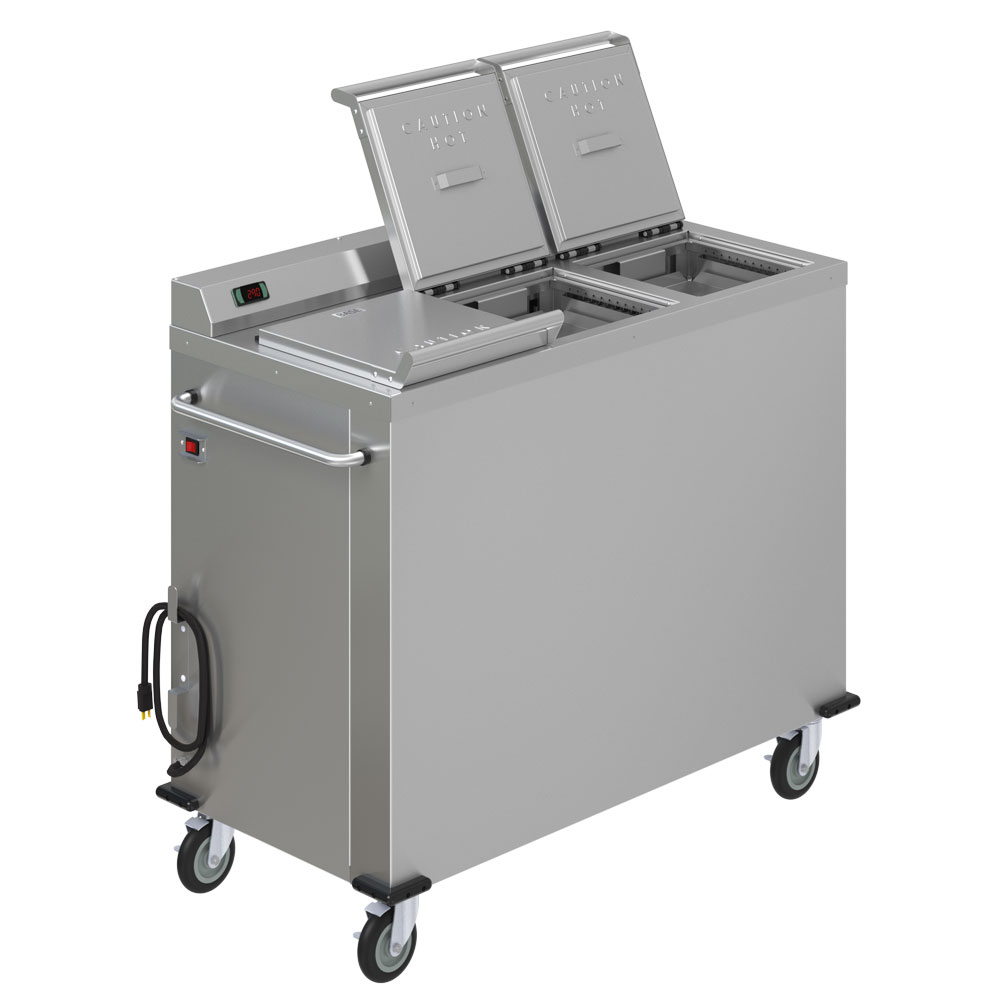The heating system shall be a forced air convection design that circulates thermostatically controlled super heated air evenly through the fully insulated cabinet. The dual voltage unit shall be designed to draw 3200 watts at 240 volts with 13.5 Amps and 3000 watts at 208 volts with 14.5 Amps.
