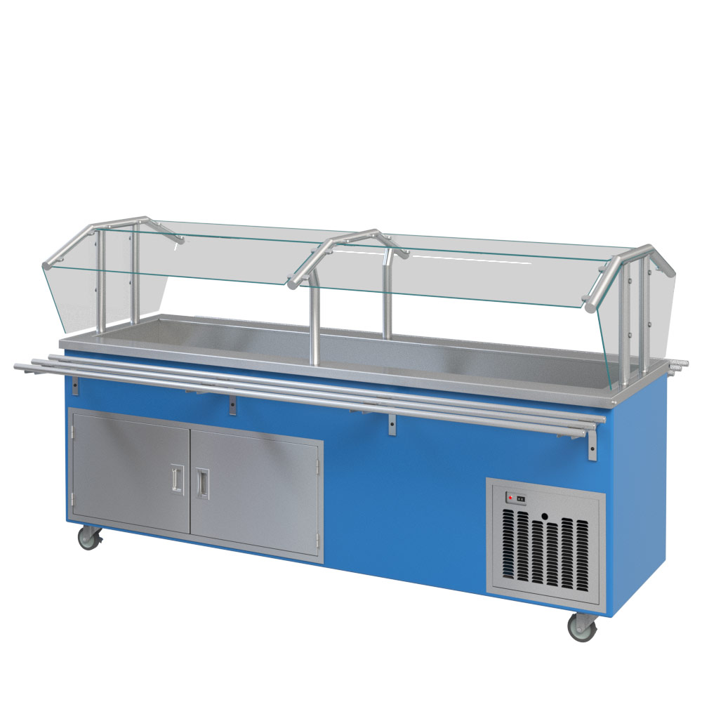 Heated storage base with doors and pan slides (convertible racks hold 10-2" deep 12" x 20" pans or 10 - 18" x 26" bun pans) |