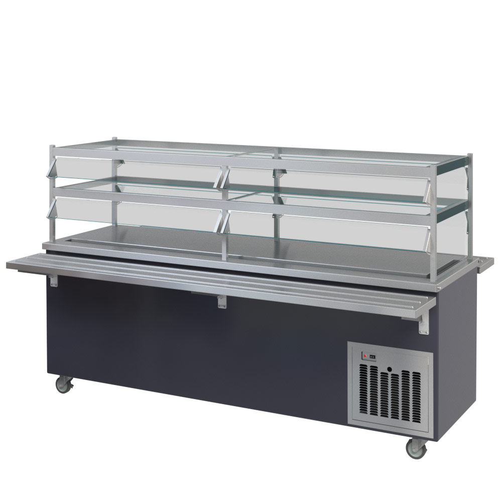 Heated storage base with doors and pan slides (convertible racks hold 10-2" deep 12" x 20" pans or 10 - 18" x 26" bun pans) |