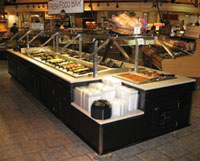 Island and Inline salad bars are available in 6', 8', 10', 12', and 14' standard sizes with many options (including stone and solid surface counter tops) and accessories.